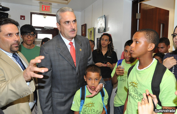 Durante la inauguración de ambas exposiciones el Presidente del Senado reconoció el arte de la caricatura y el medio tan especial que resulta el mosaico. Además, recordó cómo conoció a varios incisivos caricaturistas de varios medios –que ya han expuesto en esta Galería- y compartió con los nuevos estudiantes del Taller que visitaron la Galería para apreciar el trabajo exhibido. Para muchos de estos estudiantes, la Galería de la Sala de Prensa es su primera experiencia de visitar una exposición de arte.