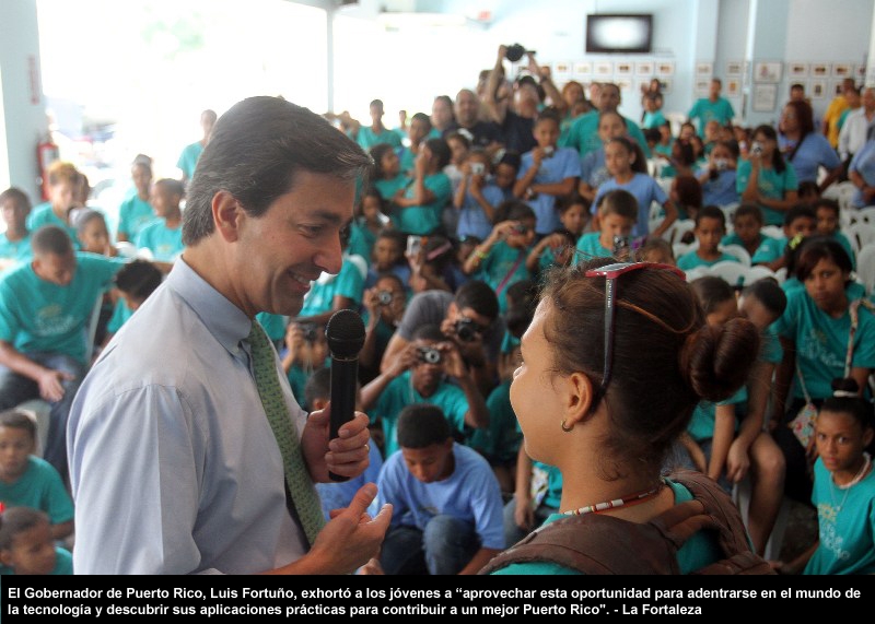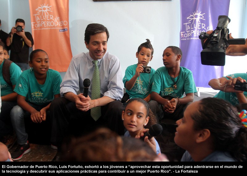 El gobernador de Puerto Rico, Luis Fortuño, compartió hoy con cerca de 200 participantes del campamento de verano del Taller de Fotoperiodismo, que con una aportación de $1.9 millones del Gobierno atiende 1,636 estudiantes de diferentes partes de la Isla. Vea las fotos
