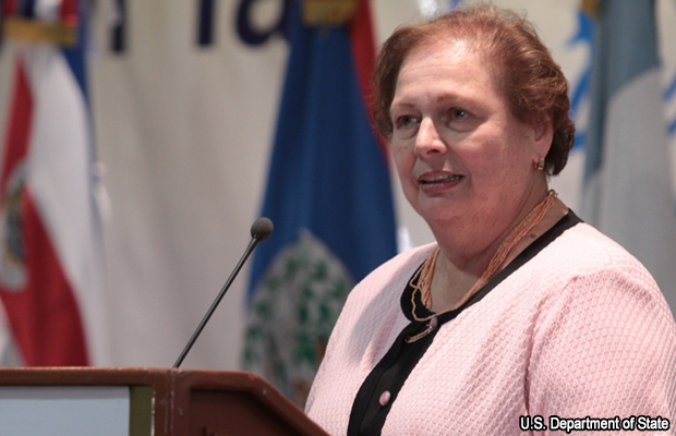 La diplomática dijo respetar la opinión del presidente salvadoreño Mauricio Funes, quien ha dicho que se ha “sobredimensionado” el poder económico de la MS-13.