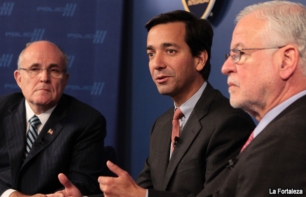 El gobernador de Puerto Rico, Luis Fortuño y el superintendente de la Policía, Héctor Pesquera, recibieron hoy la visita del ex alcalde de New York, Rudolph “Rudy” Giuliani, quien compartió su conocimiento y experiencia en materia de asuntos de seguridad pública.