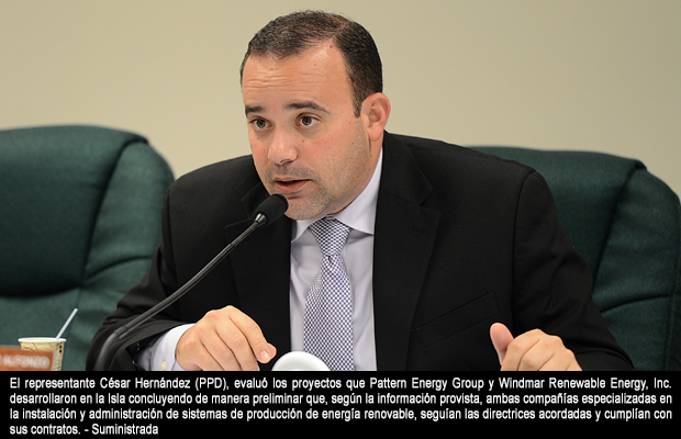 El presidente de la Comisión, el representante César Hernández Alfonzo (PPD), evaluó los proyectos que Pattern Energy Group y Windmar Renewable Energy, Inc. desarrollaron en la Isla concluyendo de manera preliminar que, según la información provista, ambas compañías especializadas en la instalación y administración de sistemas de producción de energía renovable, seguían las directrices acordadas y cumplían con sus contratos.