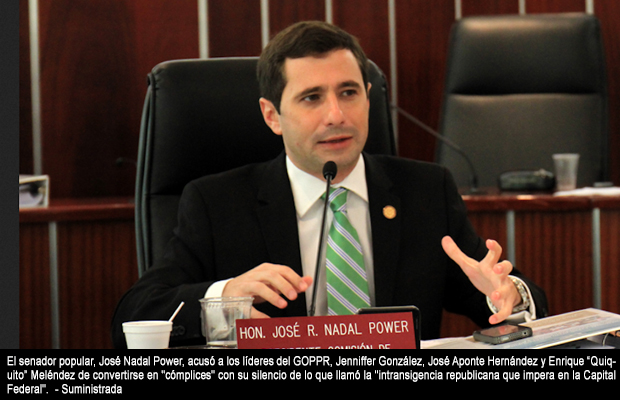 El senador popular acusó a los líderes del GOPPR, los representantes Jenniffer González, José Aponte Hernández y José Enrique “Quiquito” Meléndez de convertirse en “cómplices” con su silencio de lo que llamó la “intransigencia republicana que impera en la Capital Federal”. El probable cierre de la mayoría de las dependencias del gobierno federal de los Estados Unidos tendría, según Nadal Power, consecuencias negativas en la economía de Puerto Rico y los Estados Unidos y cuestionó que los republicanos locales no “hayan dicho ni pío” sobre el asunto.