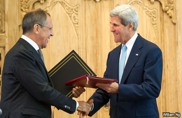 El secretario Kerry se reunió en Indonesia con el ministro de Relaciones Exteriores ruso, Sergei Lavrov, quien dijo que el gobierno de Rusia –aliado de Siria— hará todo lo posible para asegurar que el gobierno del presidente Bashar al-Assad coopere.