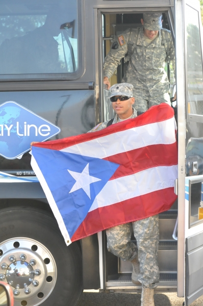 “Nuestra unidad cumplió la misión e hicimos lo que teníamos que hacer. Gracias a Dios llegamos todos sanos y salvos y estamos listos para cualquier otra misión a la que haya que ir,” dijo el encargado del destacamento, Sargento Primera Clase Germán Cuevas a pocos minutos de bajar del autobús que les transportó desde el aeropuerto Luis Muñoz Marín hasta la antigua base Ramey de Aguadilla.
