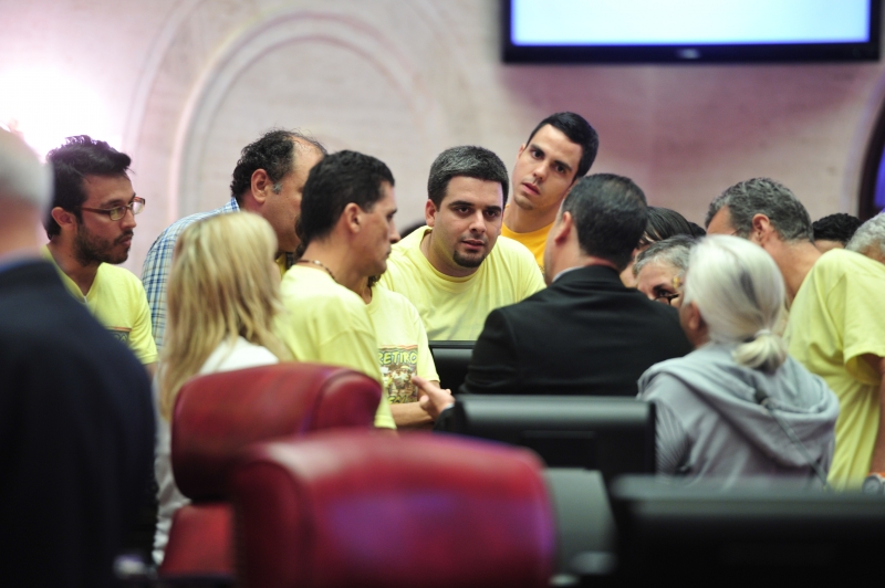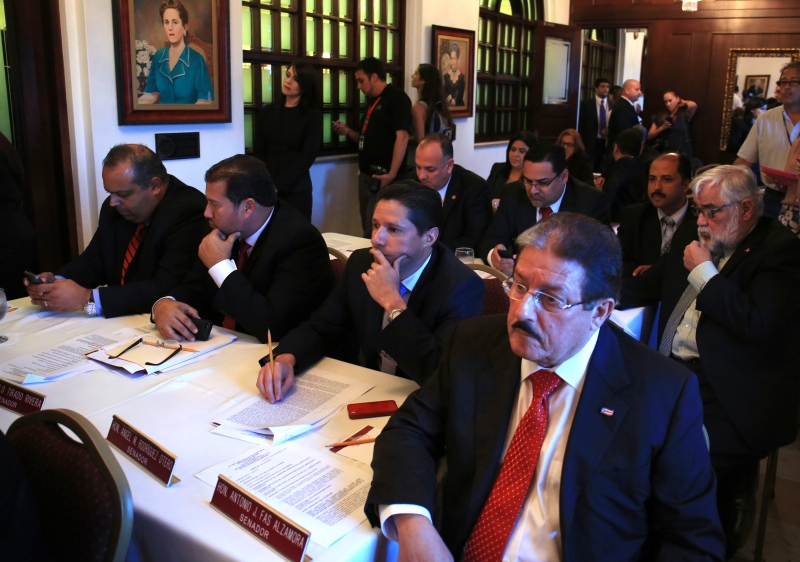 El Senado celebró su sesión extraordinaria del jueves en el Salón de Mujeres Ilustres, contiguo al hemiciclo, donde tradicionalmente celebra sus sesiones, ya que un grupo de manifestantes de la Federación de Maestros de Puerto Rico (FMPR) invadiera el lugar por la fuerza y se resistieron abandonar el mismo. Vea las fotos