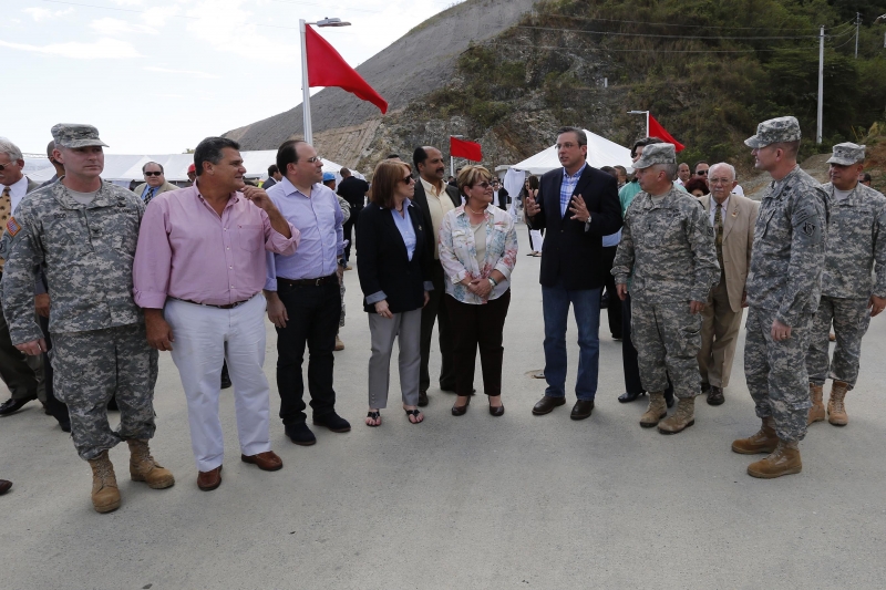 “Hoy no solo inauguramos esta inmensa represa de 220 pies de alto y 1,230 pies de longitud; hoy cerramos un largo proceso iniciado en 1970, cuando el Congreso de Estados Unidos autorizó al Cuerpo de Ingenieros del Ejército el proyecto de control de inundaciones, del cual esta represa es su último componente”, explicó el primer mandatario.