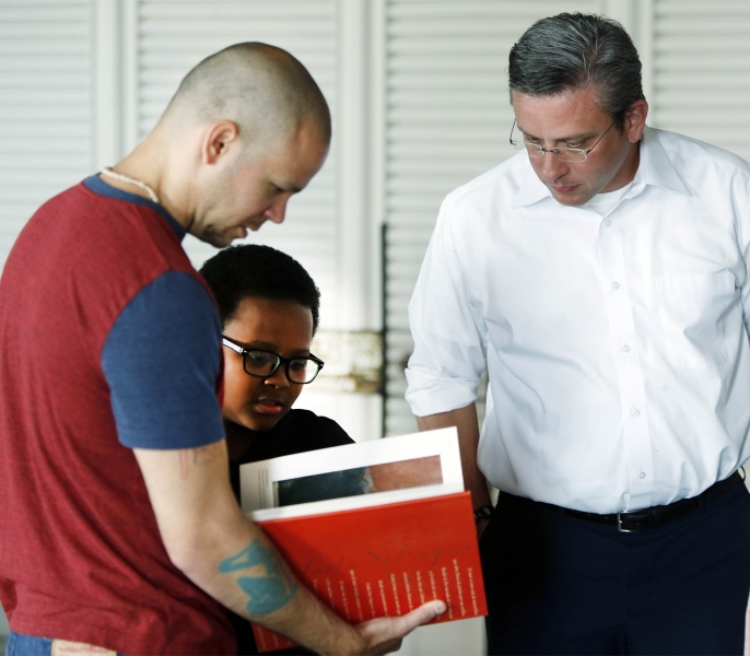 El gobernador de Puerto Rico, Alejandro García Padilla (PPD) recibió hoy en La Fortaleza al cantante René Pérez, mejor conocido como “Residente”, del grupo de música urbana Calle 13, así como a Jerald Constanso, Jaylivan Díaz y Billy Roque, representantes de la comunidad del Caño Martín Peña y de la barriada Los Morales, respectivamente.