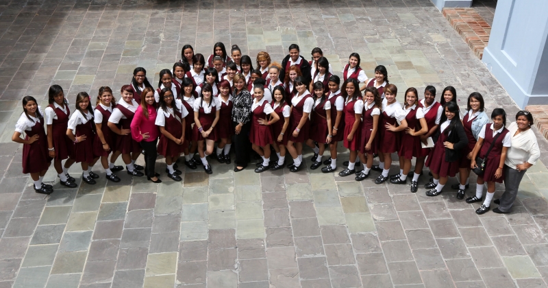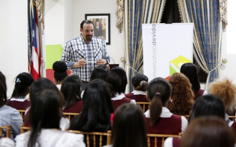 La primera dama de Puerto Rico, Wilma Pastrana, recibió en La Fortaleza a un grupo de estudiantes de la Escuela Natividad Rodríguez del Municipio de Arroyo, para celebrar por quinta ocasión el Conversatorio de Vida. Se trata de una actividad en la que jóvenes que cursan el cuarto año de escuela superior reciben un taller acerca de las oportunidades disponibles para continuar estudios postgraduados y mejoramiento profesional para insertarse al campo laboral. Las estudiantes participaron, además, en una charla dirigida a fortalecer su autoestima y a enfrentar posibles temores a cualquier tipo de cambio en su vida, dirigida por el Dr. José A. Martínez. Pastrana ofreció un recorrido a las estudiantes a través del Palacio de Santa Catalina, donde también tuvieron la oportunidad de compartir junto al gobernador, Alejandro García Padilla. El grupo de estudiantes estuvo acompañado por su maestra y consejera escolar. “Queremos continuar abriendo las puertas de La Fortaleza a nuestros jóvenes. Queremos que tengan la oportunidad de conocer y aprender de su historia, y al mismo tiempo, recibir las herramientas que le ayuden a conducirles al éxito profesional o alcanzar cualquier meta personal que se propongan”, sostuvo la Primera Dama. Los Conversatorios de Vida forman parte del programa de prevención que la Primera Dama dirige a través de todas las regiones educativas en la isla.