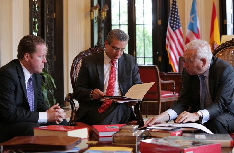 El gobernador de Puerto Rico, Alejandro García Padilla (PPD) recibió hoy en La Fortaleza al ministro de Asuntos Exteriores y de Cooperación de España, José Manuel García-Margallo. Como parte de la agenda, se discutieron maneras de fortalecer la relación comercial y cultural entre España y Puerto Rico; se trataron los temas de la doble imposición fiscal, la Casa Cultural de España en Puerto Rico y la Escuela Diplomática en Madrid, entre otros asuntos económicos y comerciales. Vea las fotos