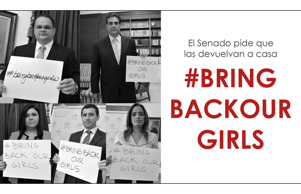Además de la Resolución, el Senado se sumó al movimiento que promueve la campaña de redes sociales a favor de esta causa. La Resolución presentada por Rossana López León (PPD) y a la que se unieron todos los senadores, condena el secuestro masivo ocurrido en Nigeria, así como todas las formas de trata humana en Puerto Rico y en el mundo.