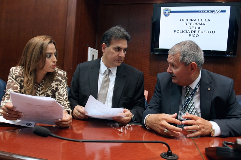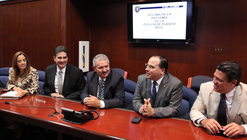 Los presidentes de la Cámara de Representantes y Senado de Puerto Rico, Jaime Perelló (PPD) y Eduardo Bhatia (PPD), respectivamente, se reunieron esta mañana con el Superintendente de la Policía, José Caldero, para dar seguimiento al progreso de la Reforma que experimenta la Policía de Puerto Rico tras el acuerdo judicial en el Tribunal Federal. En la reunión de trabajo también se discutieron asuntos relacionados a la capacitación del cuerpo policíaco para tratar asuntos de sectores minoritarios, la integración del plan de seguridad presentado por el presidente de la Cámara y la implementación de medidas efectivas para la protección de derechos civiles en Puerto Rico. Vea las fotos