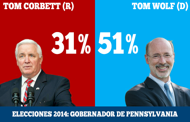 La encuesta telefónica a nivel estatal entre Posibles Votantes de Pennsylvania refleja que Wolf obtendría el 51% de los votos, sobre un 31% de Corbett si las elecciones fueran hoy. Un 4% de los entrevistados prefieren otro candidato y un 14% se mantienen indecisos en este momento.