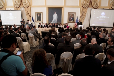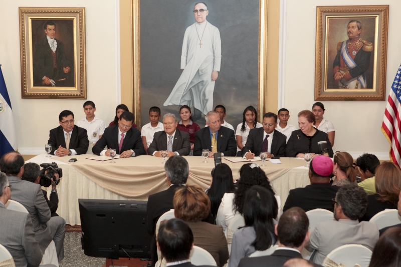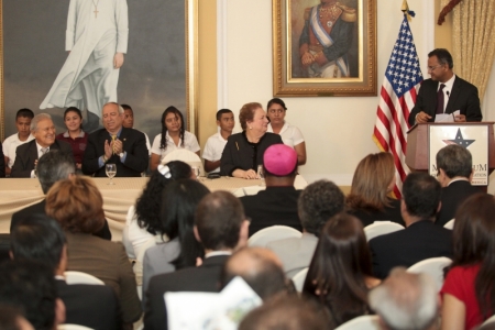 En la oportunidad, el presidente salvadoreño, Salvador Sánchez Cerén, agradeció a la embajadora de Estados Unidos en El Salvador, Mari Carmen Aponte, calificándola como “una gran socia” y “por creer en El Salvador”.
