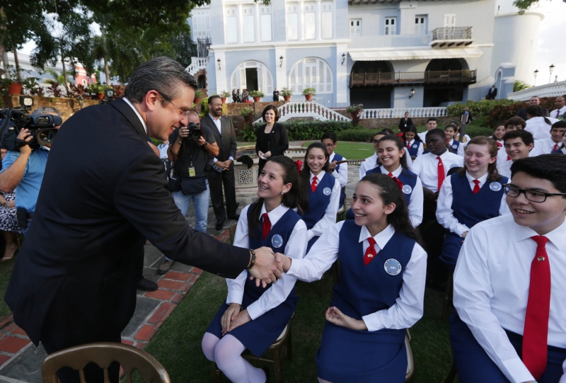 El gobernador de Puerto Rico, Alejandro García Padilla (PPD), saluda a integrantes del Coro de Niños de San Juan.