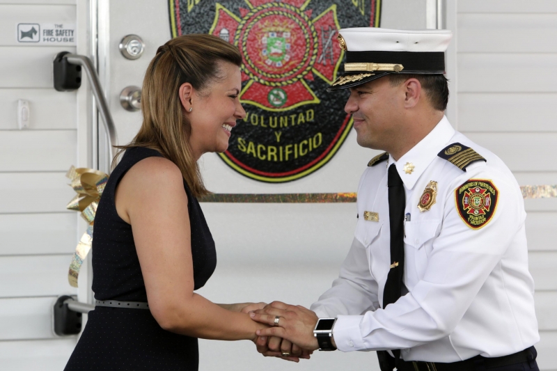 La primera dama de Puerto Rico, Wilma Pastrana, participó junto al jefe del Cuerpo de Bomberos de Puerto Rico, Ángel Crespo Ortiz de la actividad de apertura de la Semana de la Prevención de Incendios, en la escuela Abraham Lincoln en el Viejo San Juan.