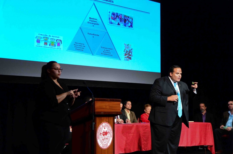 El Subsecretario para Asuntos Académicos explicó que, actualmente, la matrícula del Programa de Educación Especial representa un 35% de la matrícula total del Departamento de Educación. De los cerca de 160,000 estudiantes de Educación Especial, el 80% está integrado a la corriente regular. “La cultura de trabajo orientada a la prestación de servicios de forma sensible tiene que extenderse a todos los rincones del DE. Para esto, hemos delineado unas acciones concretas en coordinación con la Secretaría Asociada. Una de las acciones más apremiantes es la integración entre la Subsecretaría para Asuntos Académicos, la Secretaría Asociada y el componente de padres, madres y encargados para desarrollar estudiantes con las competencias necesarias para desenvolverse con éxito en el siglo XXI”, puntualizó.