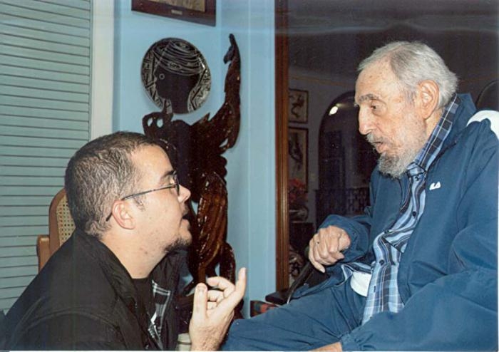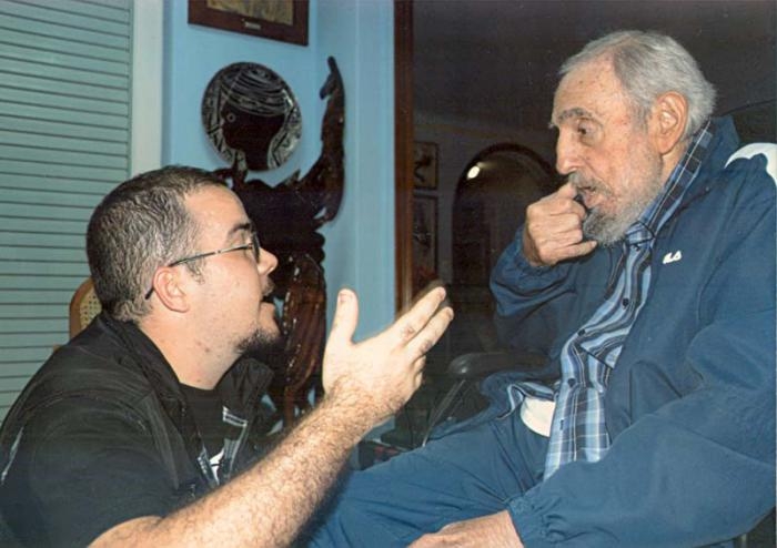 El expresidente cubano, Fidel Castro, conversa con el líder de la Federación de Estudiantes Universitarios (FEU), Randy Perdomo, durante una reunión en La Habana.