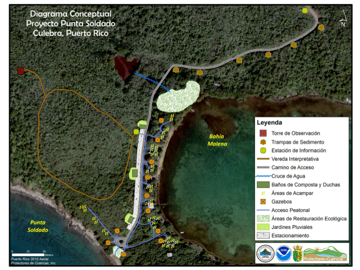 “El saneamiento forma parte de la primera fase de un plan abarcador, que una vez finalizado, permitirá a los residentes y visitantes de Culebra tener una mejor experiencia en Punta Soldado, que es una de las áreas favoritas en la isla municipio para los que disfrutan de practicar el ‘snorkeling’. El proyecto contempla una torre de observación desde donde se puede admirar la naturaleza y se divisa la isla municipio de Vieques, Fajardo y St. Thomas. También tendrá áreas de acampar, gacebos, baños de composta, veredas interpretativas, áreas de restauración ecológica, jardines pluviales y estacionamiento”, explicó Guerrero.