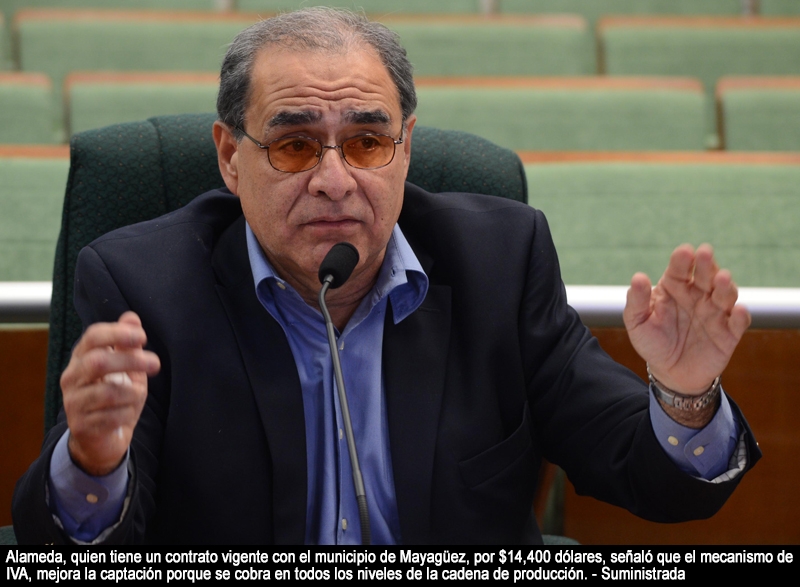 Mientras, Alameda, quien tiene un contrato vigente con el municipio de Mayagüez, (2015-000370) por $14,400 dólares, señaló que el mecanismo de Impuesto de Valor Añadido (IVA), mejora la captación porque se cobra en todos los niveles de la cadena de producción. El economista destacó que el IVA se fiscaliza a sí mismo a diferencia del Impuesto a la Venta y Uso (IVU), que lo fiscalizan los consumidores.