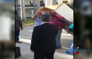 Nicolás Maduro y sus seguidores se manifiestan contra la decisión de la mayoría opositora de retirar imágenes de Hugo Chávez en el Parlamento.