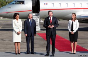 El presidente dominicano llega a suelo boricua y es recibido por el gobernador y la primera dama en la base Aérea Muñiz. Vea las fotos