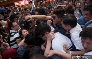 Cientos de partidarios del gobierno chino atacaron carpas y rompieron carteles de los manifestantes pro democracia.