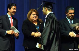 La presidenta de la Cámara de Representantes, Jenniffer González Colón, compartió con alumnos de su alma mater, la Escuela Superior University Gardens, durante los actos...