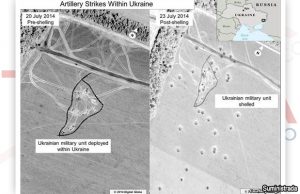 El gobierno de Estados Unidos hizo públicas imágenes de satélite que evidencian que Rusia ha atacado con artillería a tropas de Ucrania en apoyo de...