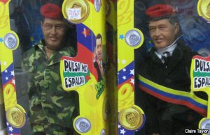 Con carteles, anuncios y muñecos gigantes traídos de China, el chavismo busca suplir la ausencia del mandatario en plena campaña electoral.