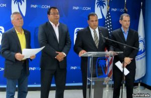 El Secretario General del Partido Nuevo Progresista (PNP), José “Pichy” Torres Zamora, el Director Ejecutivo de la colectividad, Jorge Dávila, el senador Carmelo Ríos y...