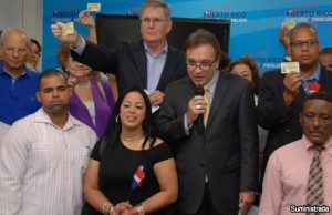 Miembros de la comunidad dominicana y colombiana se dieron cita en la sede del Partido Nuevo Progresista (PNP), para expresar su apoyo a Luis Fortuño...