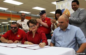 La secretaria del Departamento de la Familia, Idalia Colón Rondón, firmó hoy el Convenio Obrero Patronal de la Corporación de Industrias de Ciegos, Personas con...